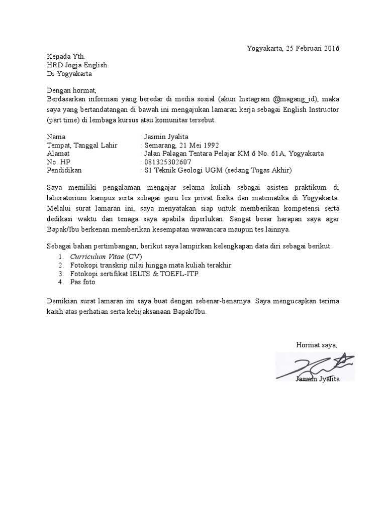Contoh Surat Lamaran Kerja Guru Les Privat : Contoh Surat Lamaran Kerja Untuk Guru Smk - Berikut adalah contoh surat lamaran kerja di pt, bank, guru, restoran, akuntan, dll.. Bagi anda yang ingin mendaftar sebagai guru honorer, maka anda bisa menggunakan contoh di bawah ini saya pun juga aktif berorganisasi selama di perguruan tinggi dan pernah mengajar les privat biologi selama 8 bulan. Surat lamaran dibawah ini bisa juga anda ganti menjadi bahasa inggris lalu di print atau di tulis tangan. Dokumen surat lamaran doc & pdf. Di bawah ini, kami telah menyediakan berbagai contoh. Hormat saya, ahmad ridlo fadli robbi, s.si.