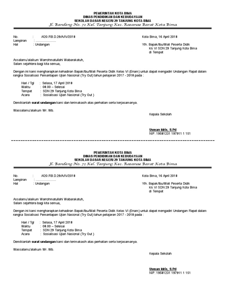 Contoh surat undangan rapat untuk orang tua wali murid. Surat undangan rapat orangtua raniah nur sahar academia edu. Contoh surat dinas sekolah sd. Contoh laporan singkat panitia mpls dalam. Orang tua / wali murid kelas xi , xii, xii sma bakti mulya jakarta.