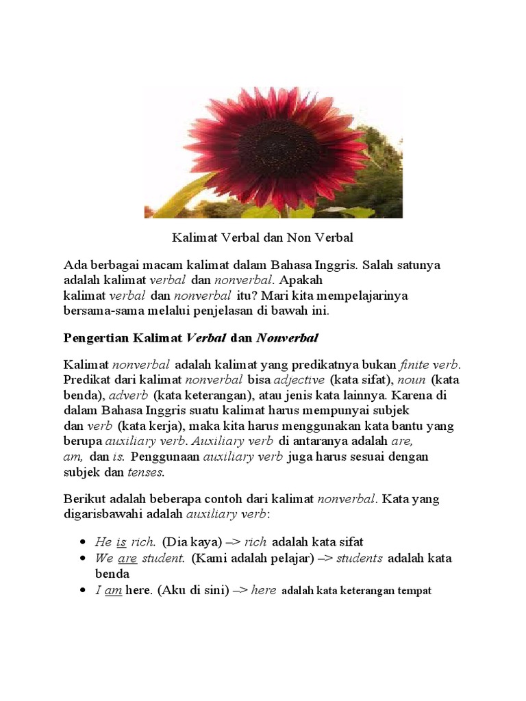 Contoh Kalimat Verbal Dan Non Verbal Dalam Bahasa Indonesia - Kom Verbal Dan Nonverbal : Informasi yang kita simak dalam pemahamanya kurang jelas dan tepat.. Contoh bagaimana gaya komunikasi pria dalam budaya amerika dan budaya indonesia. Dalam kalimat tanya, akan dibentuk dengan menambahkan kata do/does untuk kalimat verbal. Frasa nominal dalam kalimat bisa berkedudukan sebagai subyek dan juga obyek. Tuliska … n perbedaan antara tempat hidup tanaman padi dan teh!2. Contoh kalimat verb (kata kerja bahasa inggris).